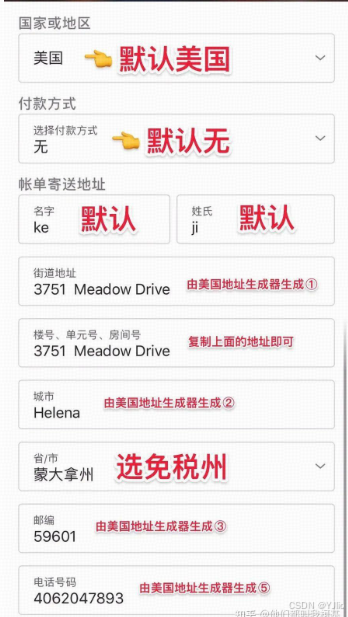 账单地址:填写一个通过合法渠道生成的美国地址信息。