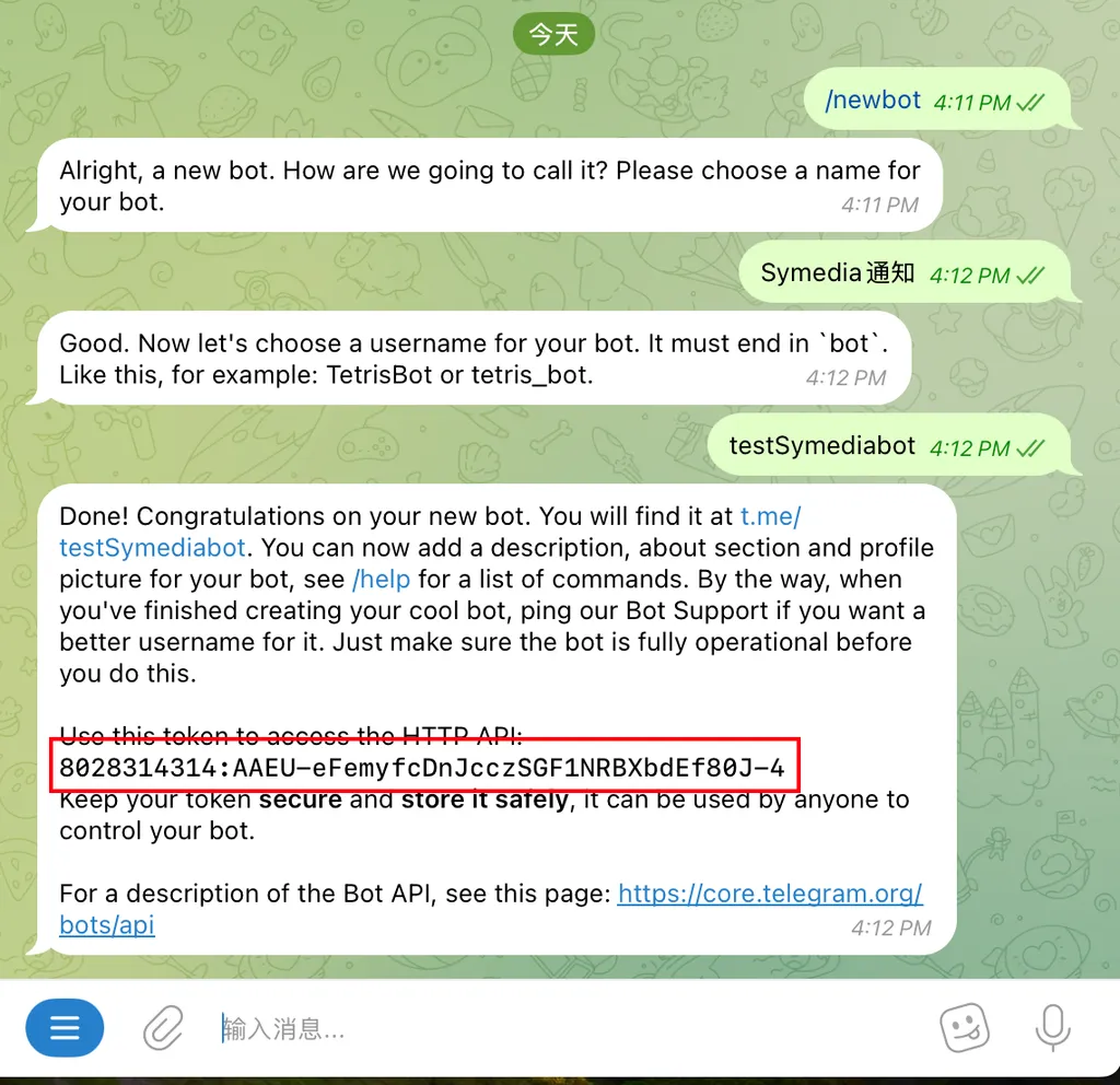 4、给自己的机器人起一个独一无二的ID,注意,以bot或_bot结尾