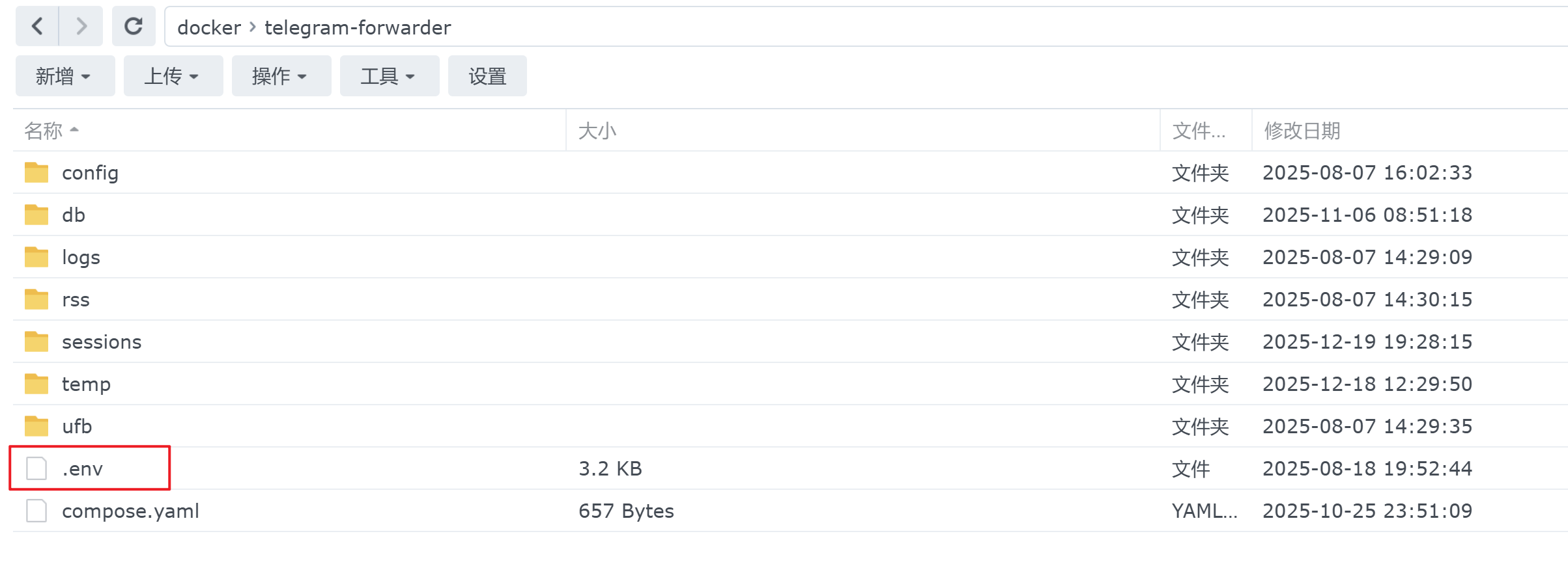 mkdir -p /docker/telegram-forwarder/{db,logs,sessions,temp,ufb/config,config,rss/{data,media}}3.2 创建 docker-compose.yml
