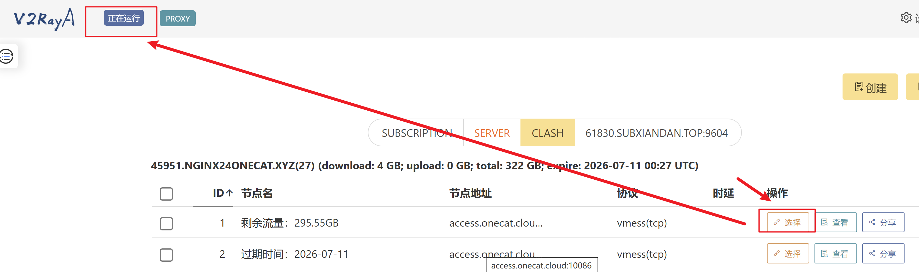 回到主页,选择一个可用的节点