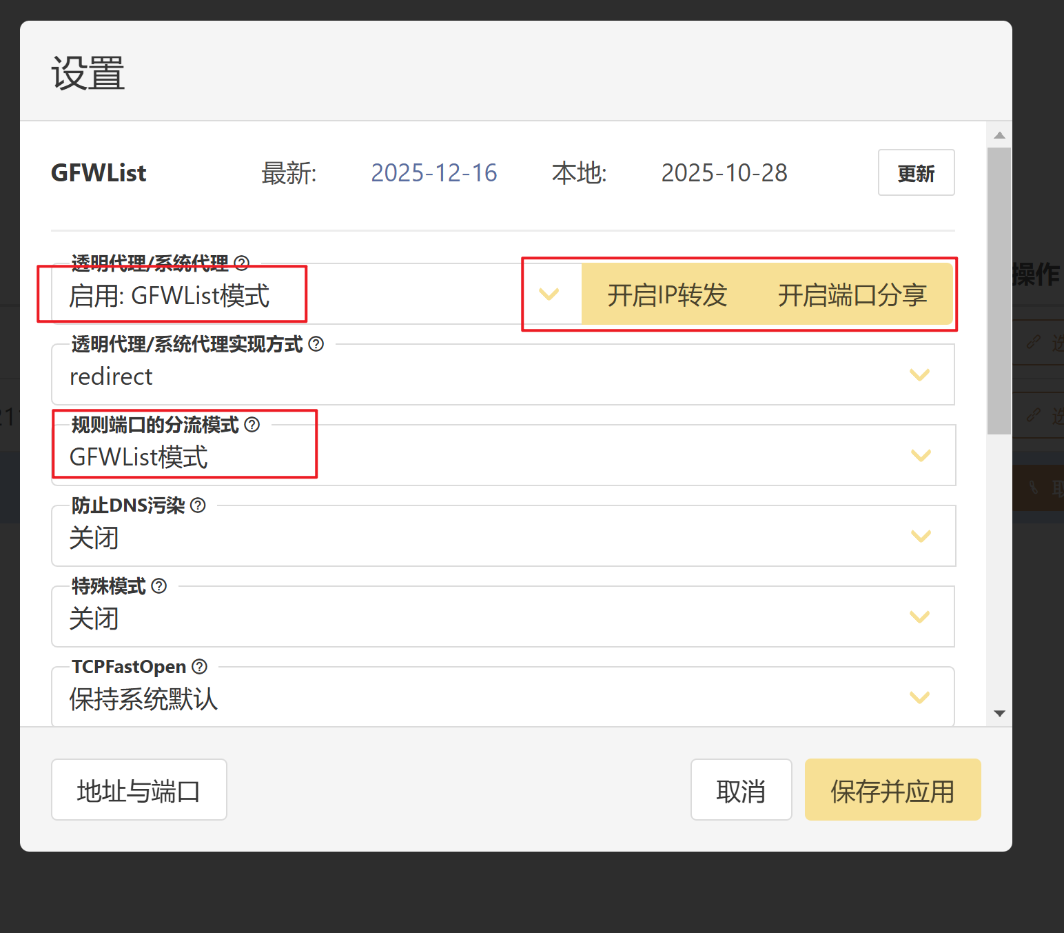 点击「更新 GFWList」按钮