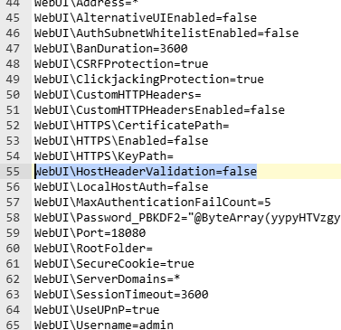 WebUI\HostHeaderValidation=false如果已有该行,将其值改为
