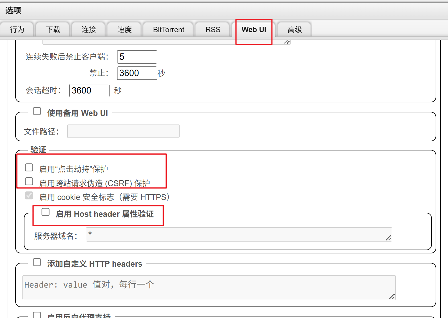 Host Header 验证机制:新版 qBittorrent 启用了 WebUI 的 Host Header 校验,防止跨域攻击。