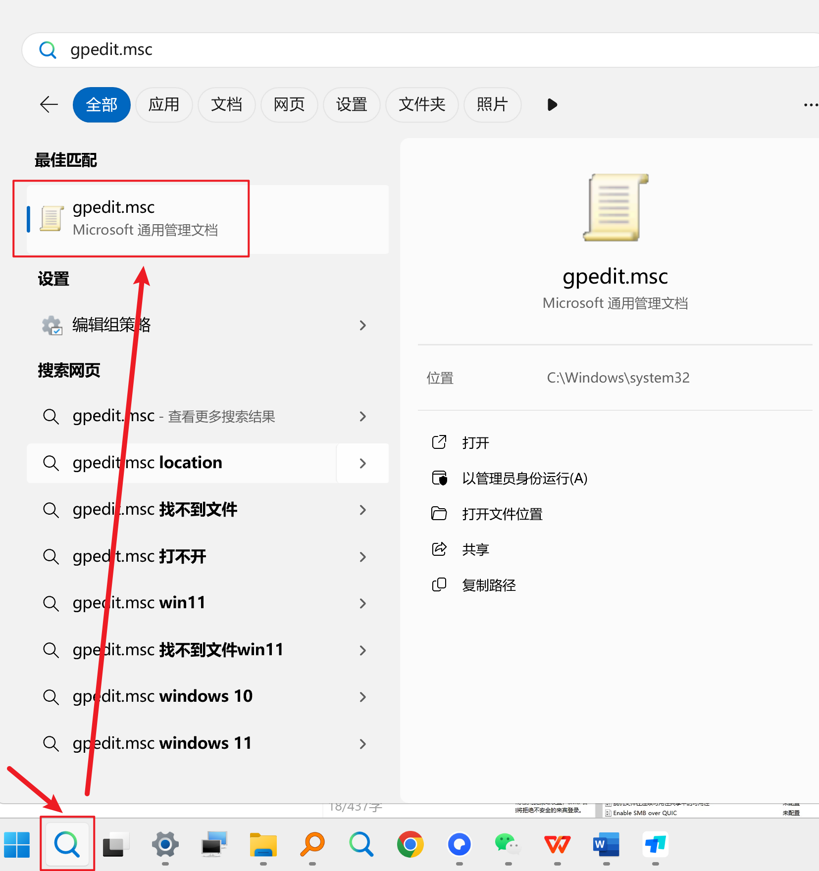 在win10的电脑上的左下角搜索框输入gpedit.msc,然后找到Microsoft通用管理文档